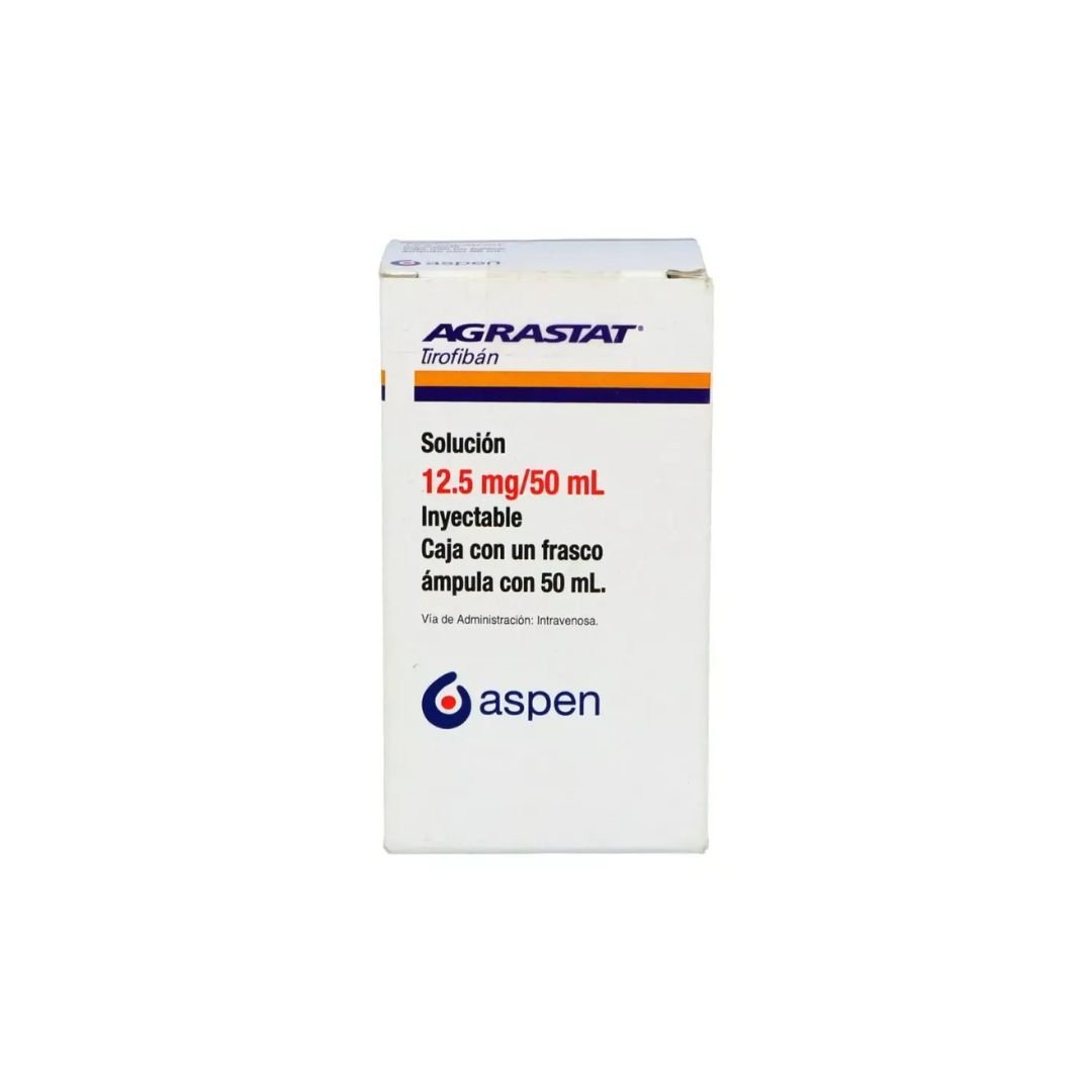 AGRASTAT (tirofiban) 12.5 mg/50 mL es un medicamento intravenoso utilizado como antiagregante plaquetario. Está indicado para reducir el riesgo de eventos trombóticos (como infarto de miocardio o muerte) en pacientes con síndromes coronarios agudos (SCA), incluyendo angina inestable o infarto agudo de miocardio sin elevación del segmento ST (IAMSEST), que van a ser sometidos a una intervención coronaria percutánea (ICP) o que están siendo manejados de forma conservadora.