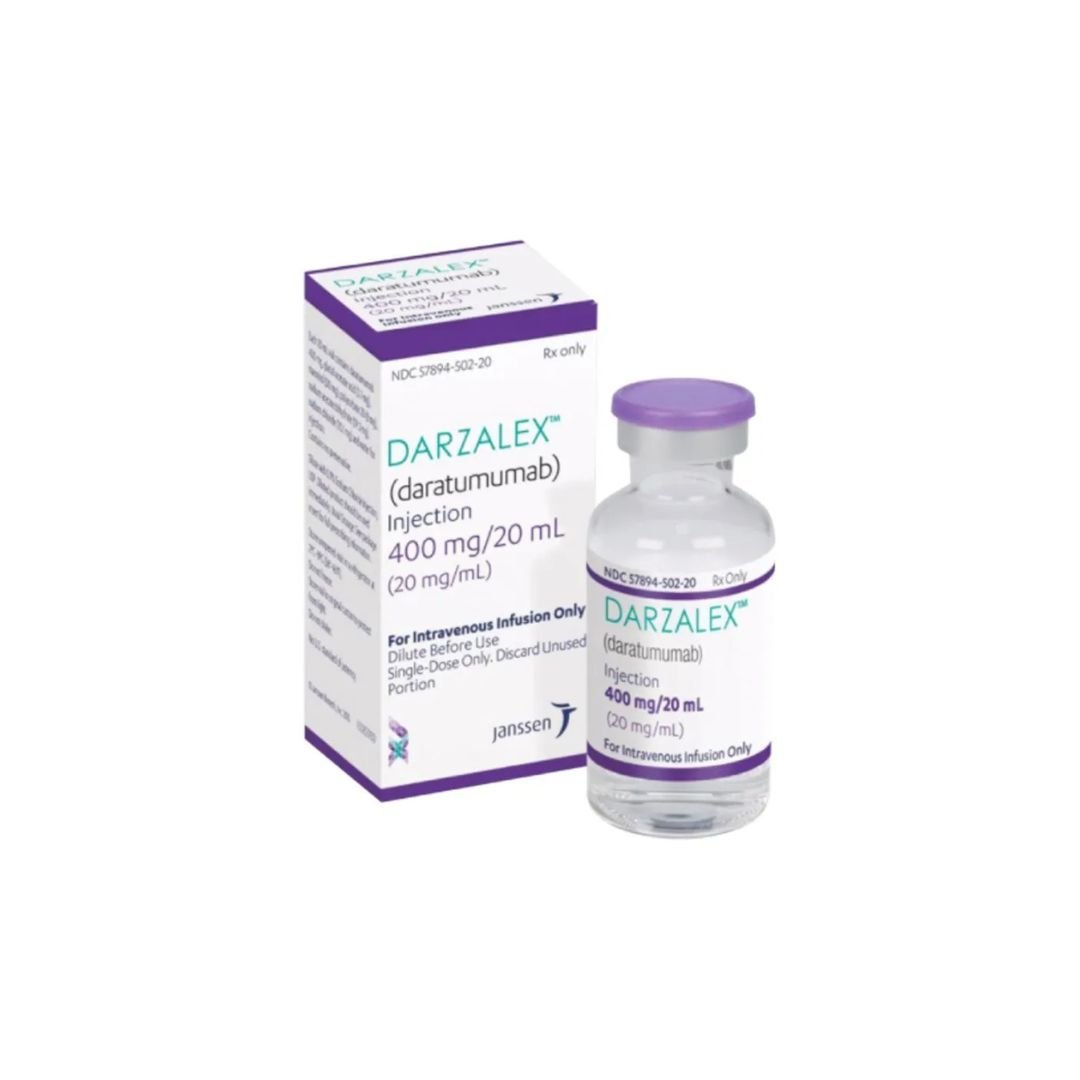 DARZALEX (daratumumab) 400 mg/20 mL es un medicamento inyectable utilizado para tratar el mieloma múltiple. Se utiliza en combinación con otros medicamentos, dependiendo de la fase de la enfermedad y el historial de tratamiento del paciente.