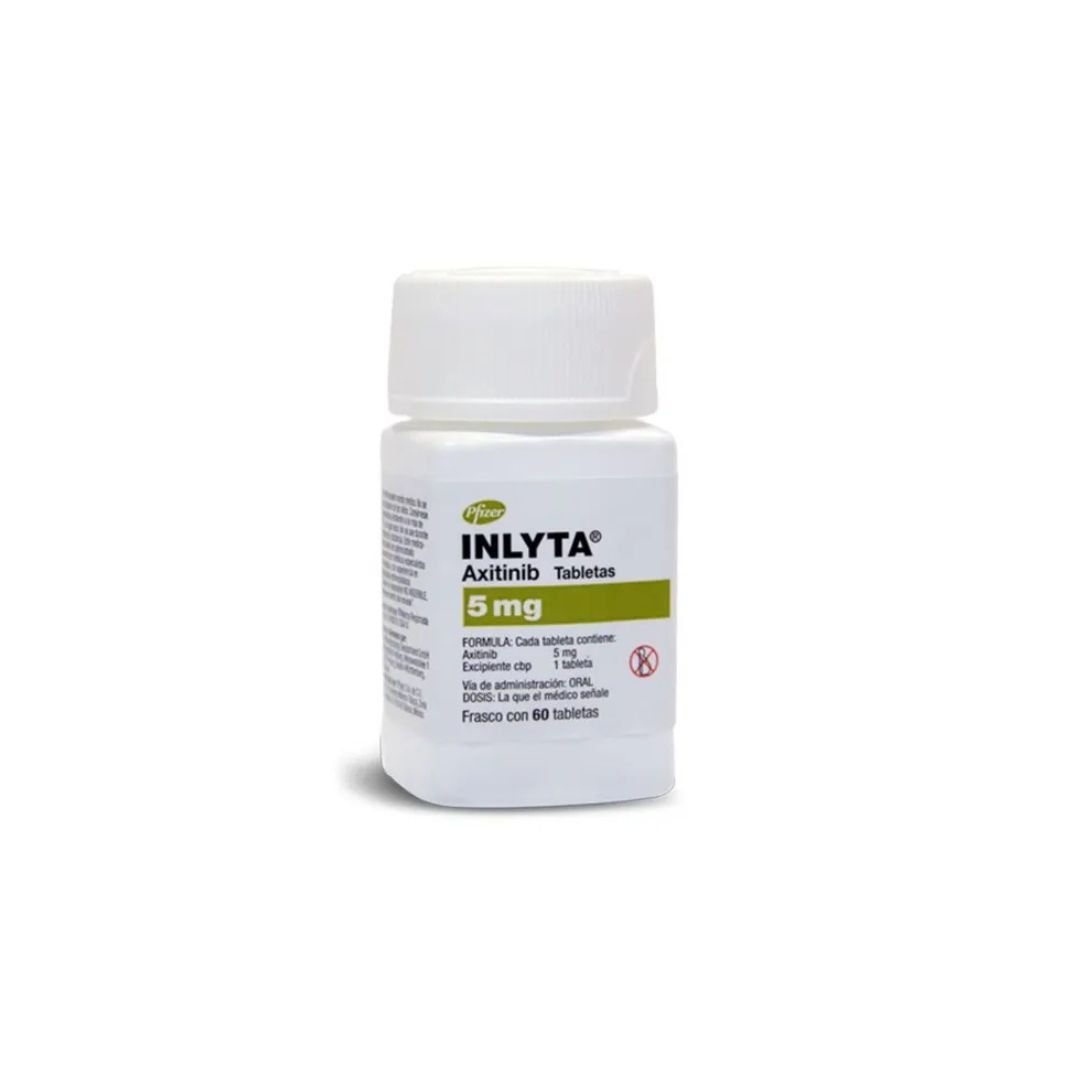 Cada frasco contiene 60 tabletas de 5 mg de axitinib. La dosis recomendada y la duración del tratamiento deben ser determinadas por un médico especialista en oncología. Es importante seguir las indicaciones del médico y realizar un seguimiento regular durante el tratamiento con INLYTA.