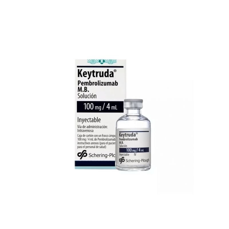 KEYTRUDA 100 mg/4 ml – Inmunoterapia inyectable (Pembrolizumab) utilizada en el tratamiento de múltiples tipos de cáncer. Presentación en frasco ámpula.