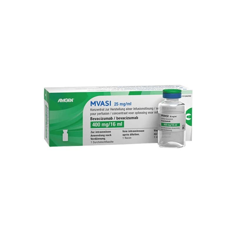 MVASI (Bevacizumab) 400 mg/16 ml es un anticuerpo monoclonal humanizado diseñado para inhibir el factor de crecimiento endotelial vascular (VEGF), bloqueando así la formación de nuevos vasos sanguíneos que alimentan los tumores. Está indicado como terapia dirigida en el tratamiento de diversos tipos de cáncer, incluyendo cáncer colorrectal metastásico, cáncer de pulmón no microcítico, cáncer de mama metastásico, cáncer de células renales y cáncer de cérvix.